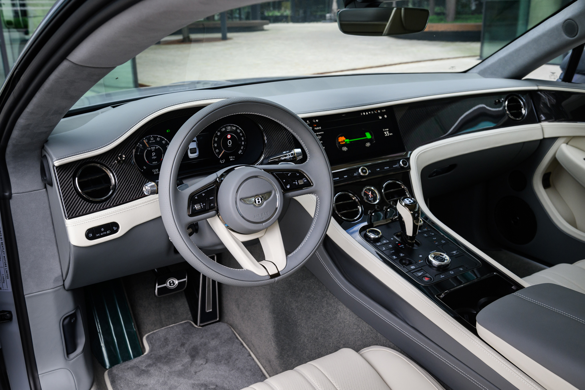 Contrast Gear Lever and Steering Wheel Spokes – by Mulliner ;Touring Specification; Panoramic Glass Roof